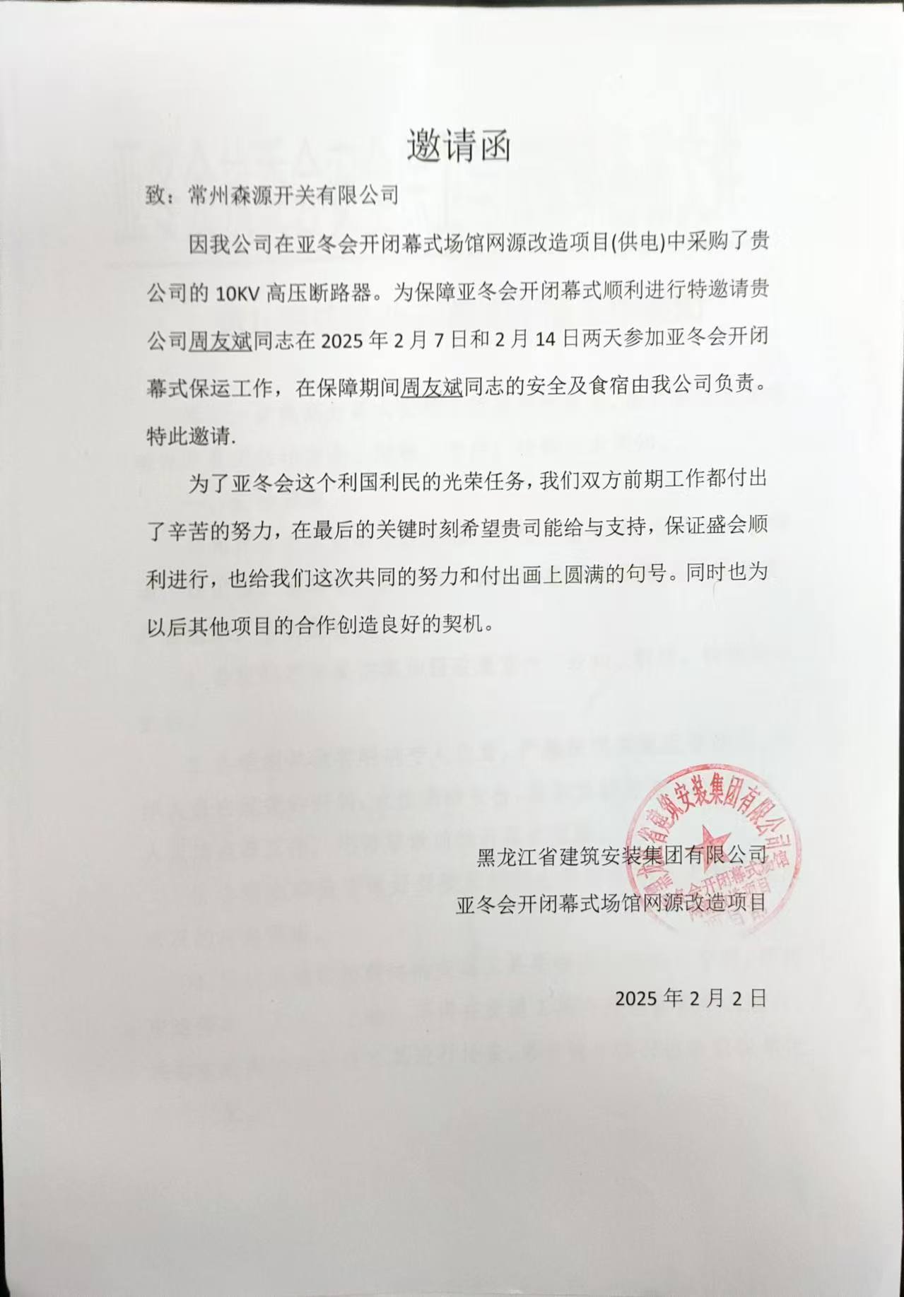 常州森源開(kāi)關(guān)有限公司助力第九屆亞冬會(huì )